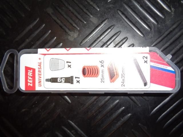 Kit réparation crevaison Zéfal, contient rustines, produit vulcanisant, râpe et démonte pneus